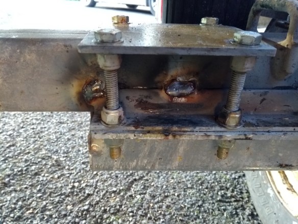 I wanted a second opinion that this was safe so I took the trailer to a local engineering firm. They were happy with the setup, but offered to weld on the angle-iron to make sure that there was no risk of failure. Cost was £5.