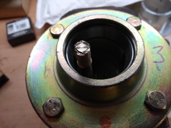 Note the number 3 on the hub. Each bearing assembly is a matched set and MUST NOT BE MIXED UP. I numbered the boxes containing the rollers to match the number on the hub.