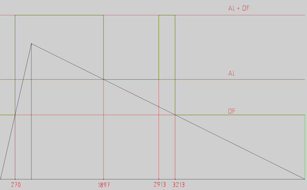 In previous posts I used a table for working out how long mast sections (main tube, strengthener, topmast) should be. Here’s a graphical way to do the same thing. It has the advantage of greater precision plus it is hopefully easier to see what is going on.