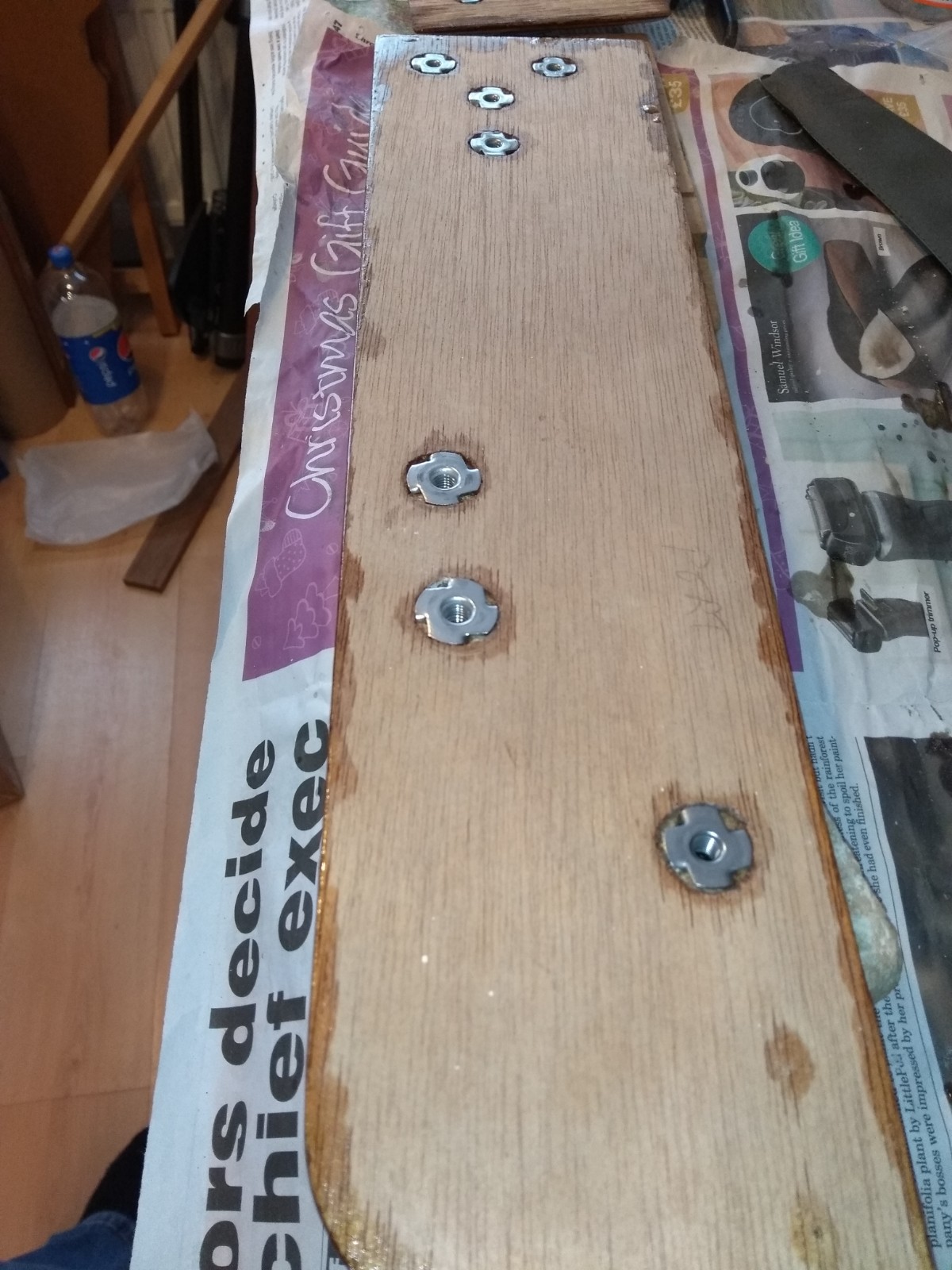 Reverse of the panel with T-nuts fitted. The T-nut recesses were sealed with thinned varnish.Continue reading →