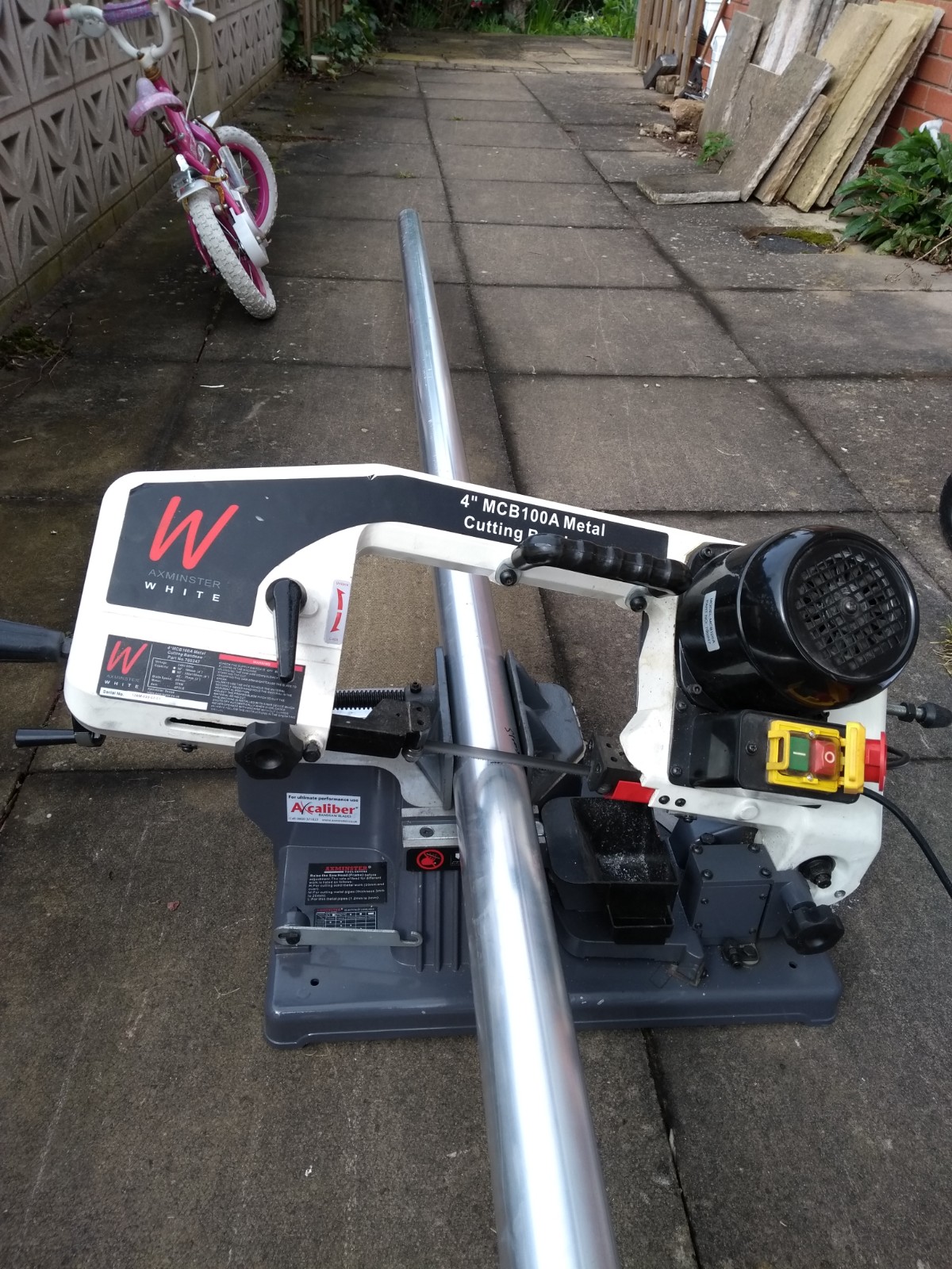 I dragged my metal-cutting bandsaw outside (after first cleaning it down to avoid metal filings in the carpets…) and set to work.