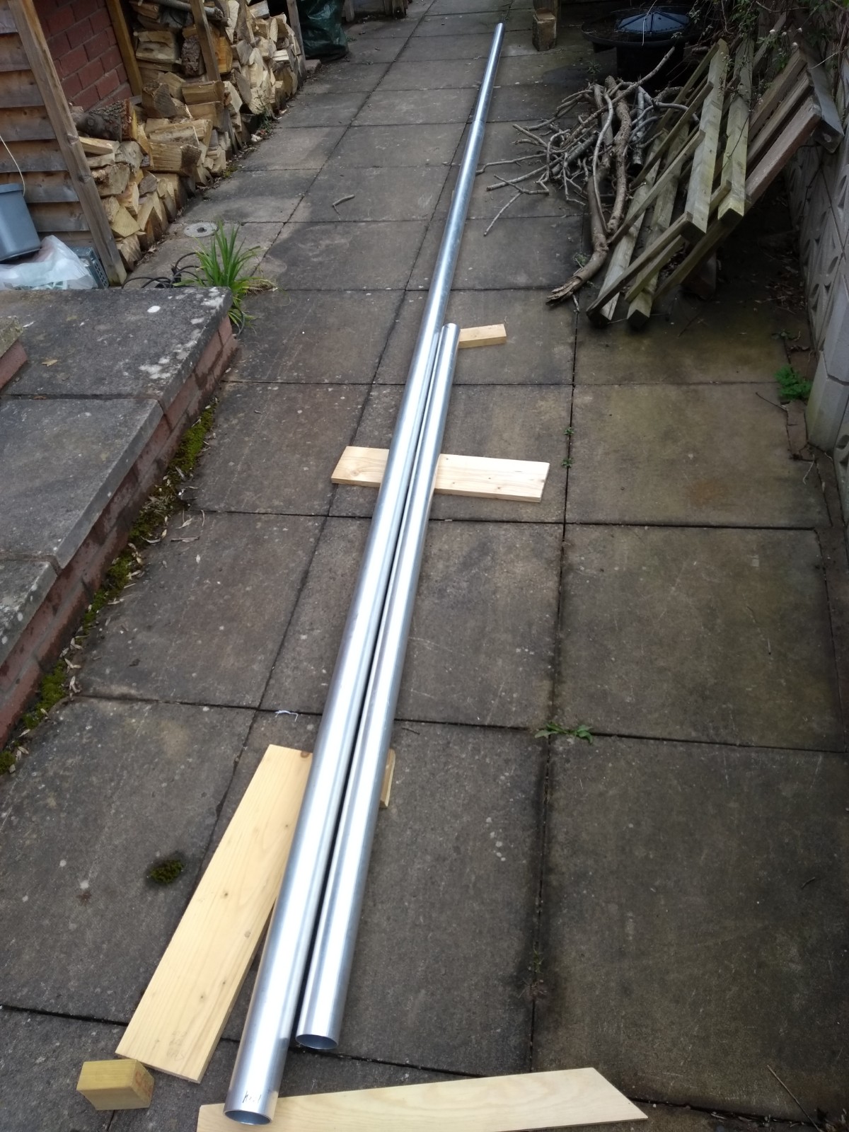 Woo! Instead of a couple of tubes I have something I can pretend is a mast! The main tube and strengthener is at the bottom of the picture with the topmast at the far end.
