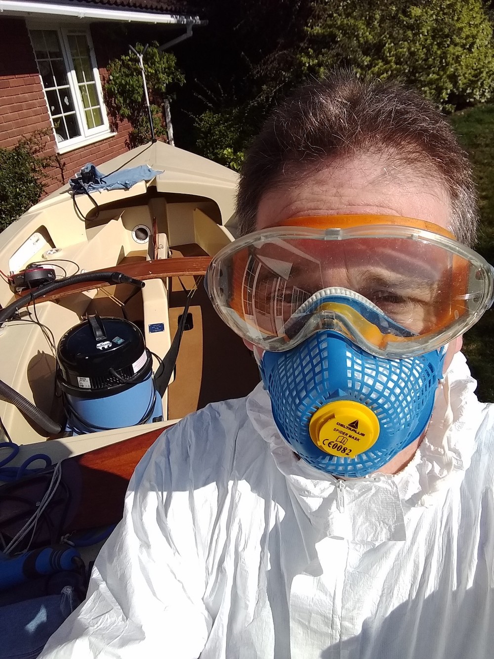 As mentioned elsewhere on this blog I’d like to keep the boat as standard as possible. The standard tabernacle sides (the vertical bits) are very visible so ideally will be reused. I will need some reinforcing around the slot to transmit the forces safely into the deck. Most of the deck is bonded to the hull with fibreglass laminations so no worries about the strength of the hull-deck joint. More pondering is needed. However hopefully I won’t need to do any more sanding and I’ll try to design something that doesn’t require too much overhead epoxy work