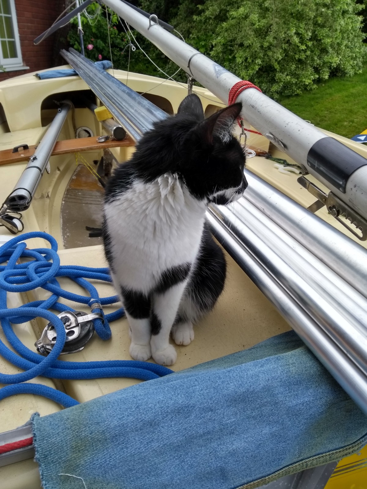 - Lash the mast to the deck cleat. This is a normal way to secure the mast, particularly in traditional boats. It would need a few turns to get the mechanical advantage to get the lashing tight enough. Possibly easier than getting a pin through. Using the deck cleat might have the disadvantage that someone might unlash the mast when unmooring the boat. I could add another cleat just for the mast. I would like to keep the rear chock – it makes the partners look tidy and helps support the mast from the side.