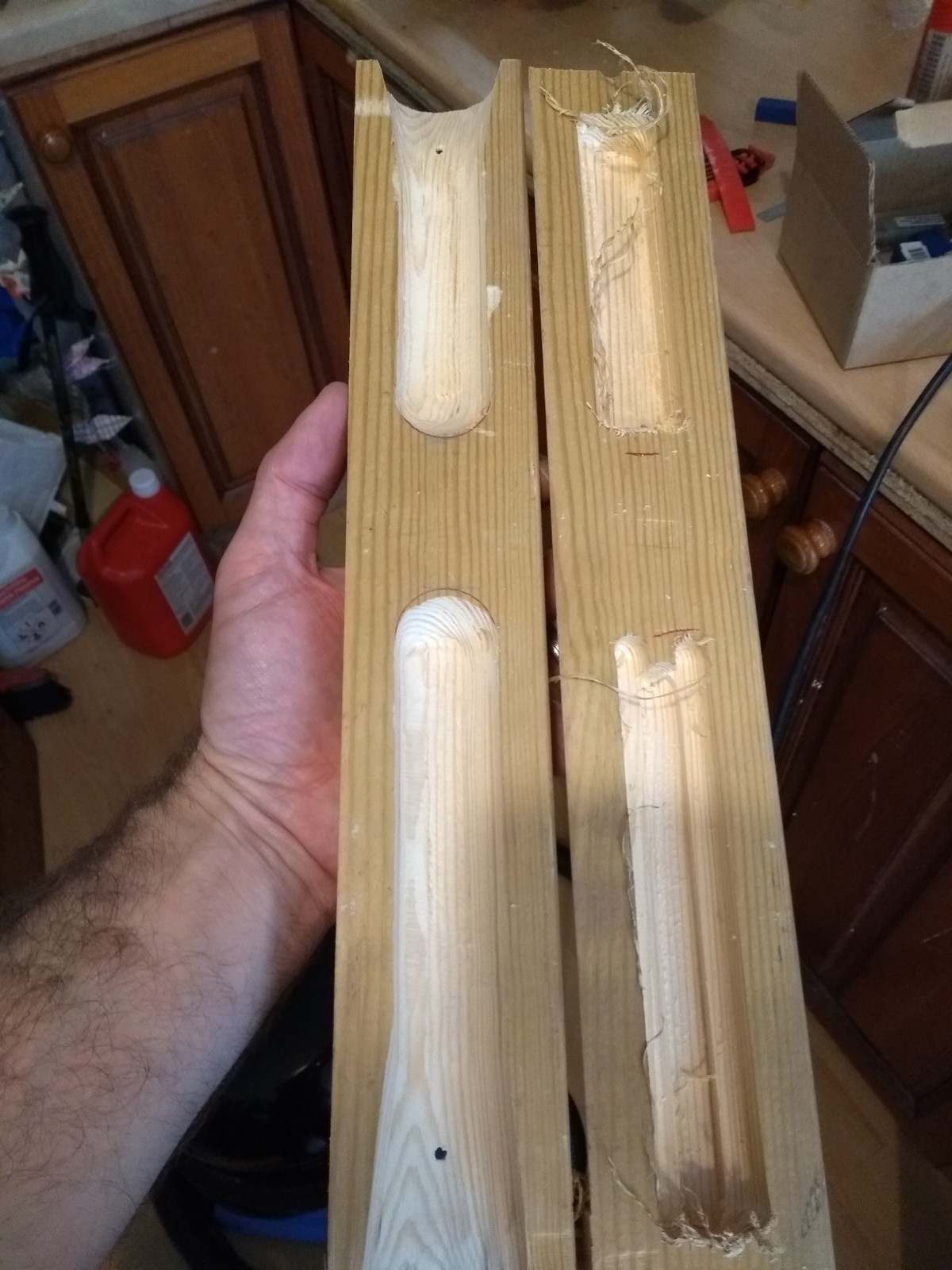 It is slowly shrinking down again as the wood preserver dries out, but the bit inside the tube isn’t shrinking quickly enough to meet the deadline.