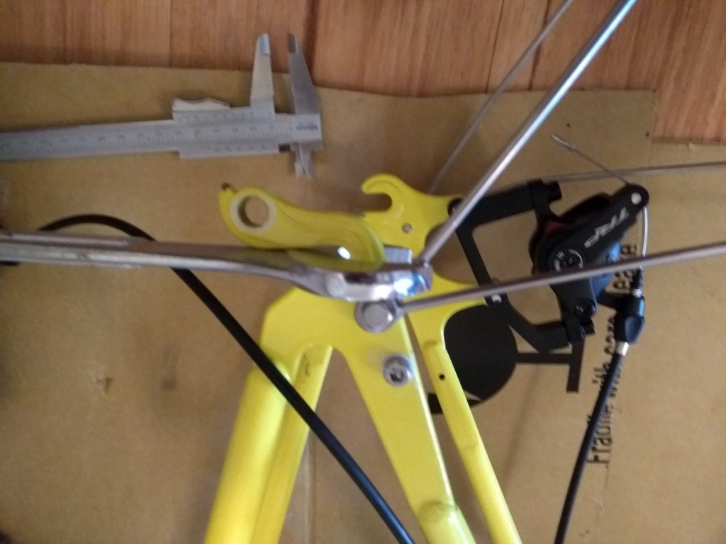 The derailleur side rear dropout was bent, so the sides of the dropout weren’t parallel and I couldn’t get the rear wheel in.