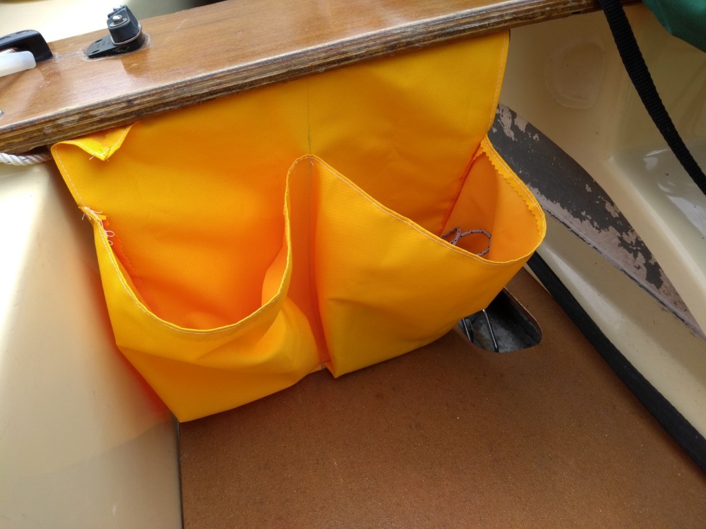 I’ve also added pockets under the thwart for the running rigging. These lines tend to get tangled on the floor, which can be embarassing if I was relying on dropping the sail to avoid hitting a jetty… Hopefully the lines can be flaked into the pockets and will run freely out.