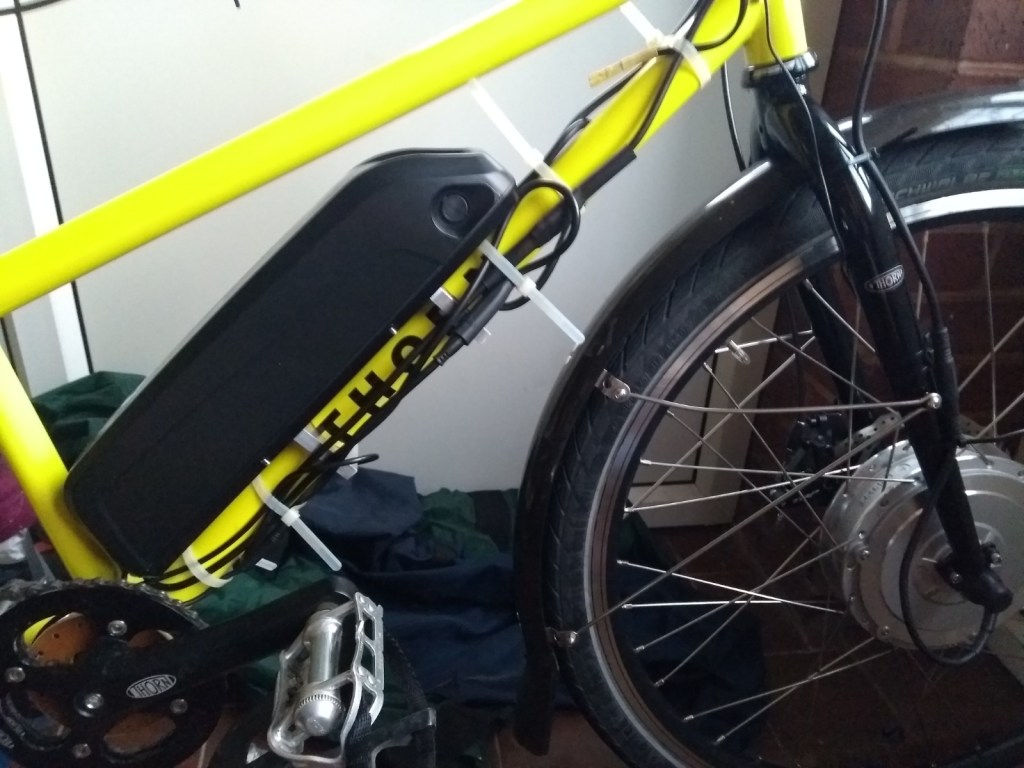 The motor is now fixed, the speed sensor wire is lengthened and the sensor fitted, and the rear brake sensor is now fitted. We’ve just done an 18 mile ride with lots of hills. How well does it work?