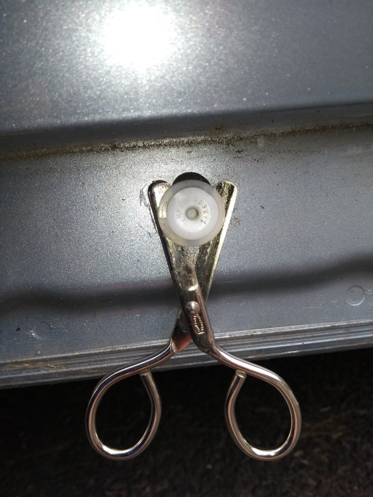 Getting the old clips out is an art. I found a pair of children’s scissors that were flat enough to fit between the clip and the metal panel; I could then squeeze the clip enough to get it out without damaging anything.