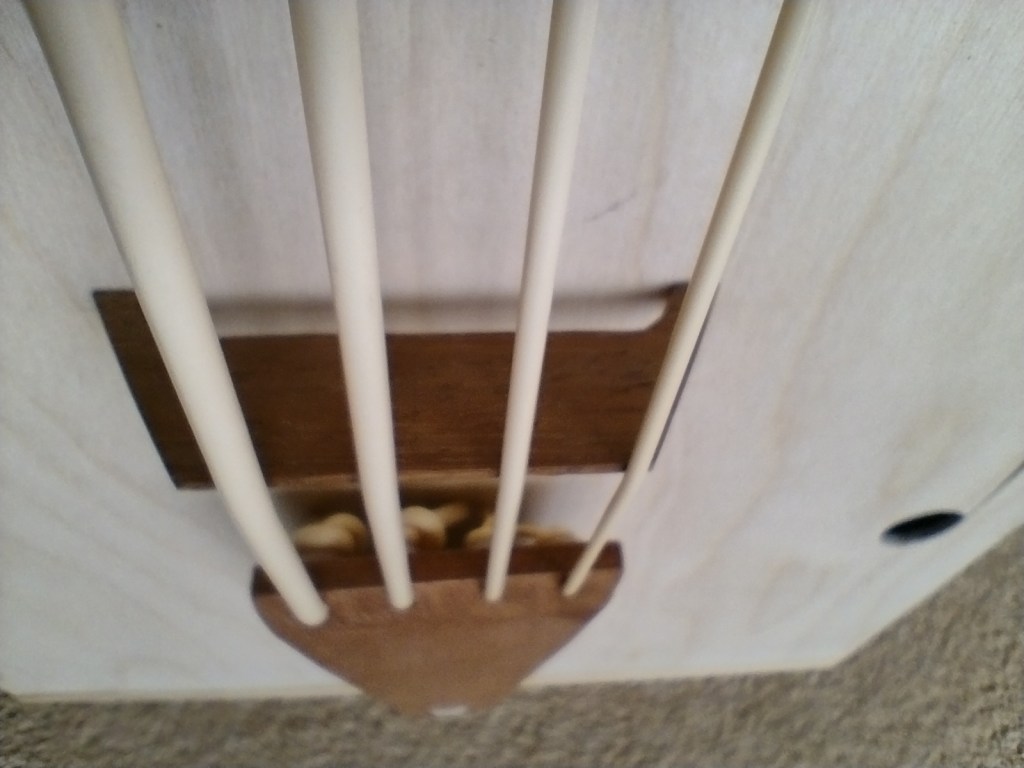 I still need to cut out the slots for the strings. It works ok as-is but plucking sideways moves the string sideways on the bridge which isn’t ideal. Cutting the slots will only take a few minutes.