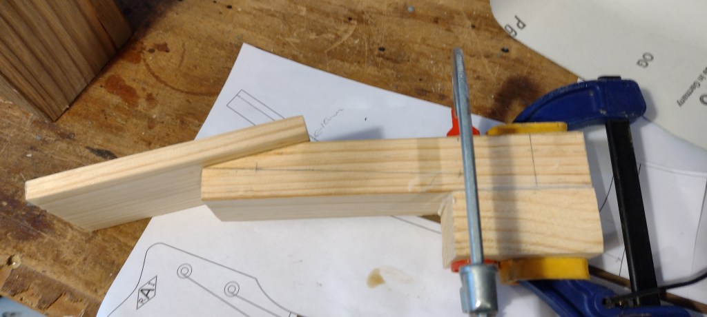 Then I cut the head piece down to match the neck – initially with a saw and then with a plane by keeping the nose of the plane on the neck and keeping going until it was flush.