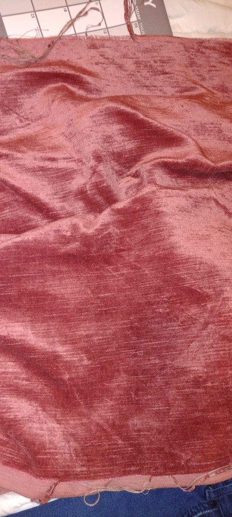 This is an upholstery fabric that has been sitting at the back of a cupboard for many years so any out-gassing should have stopped some time ago. I’m not sure how abrasive it is but it feels soft. The disadvantage of this fabric is that it is rather thick and inflexible. The big advantage is that it doesn’t cost anything.