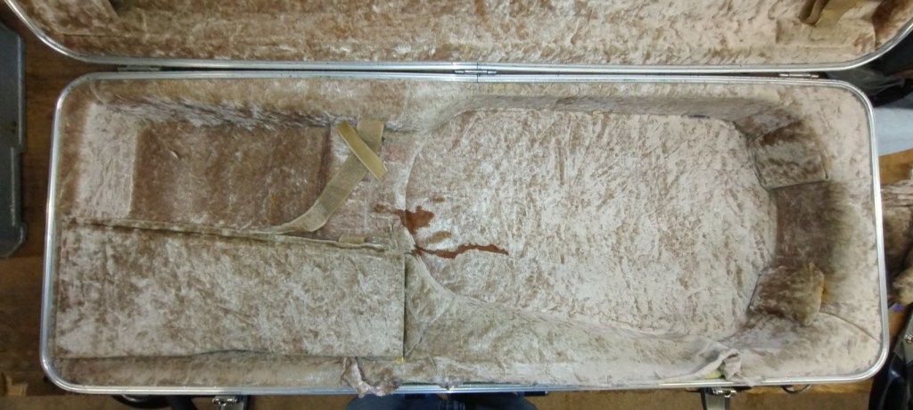 The melted sweets can be seen here escaping from the compartment in the bottom left of the picture. The case hasn’t been used for a few years as no-one wants to play a sticky viola.