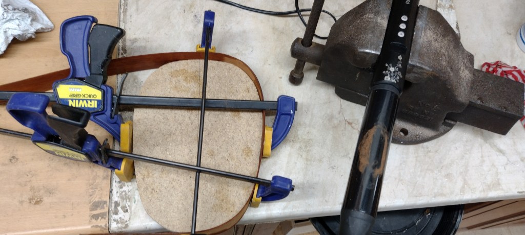 I’ve bent the sides round the mold – this was easy enough. Hair curlers work very well! I did it in two sections, leaving it overnight clamped to the mold to dry out.
