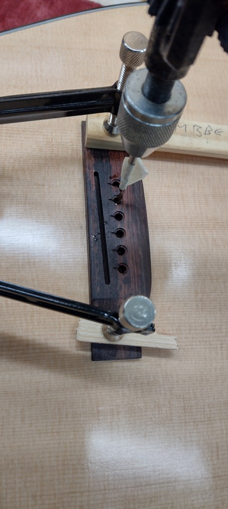 I then reamed the holes using the 3˚ reamer from StewMac. This wasn’t cheap but I couldn’t think of another way to do the job. The reamer certainly works well.