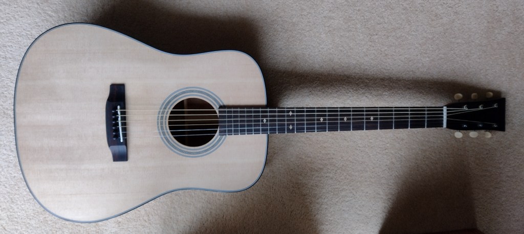 Seems pretty good. I’m not experienced in guitars but it does have the ‘shimmer’ where the strings interact with each other in a lovely way. It is certainly loud. It responds well. I’m not a guitar player and normally don’t like them much, but I’ve been playing this one (badly) just to hear it.