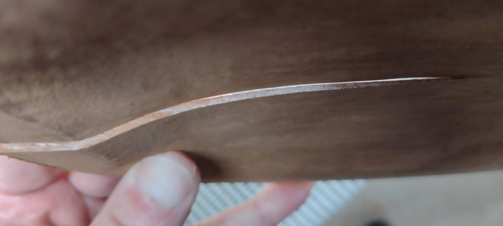 The top and bottom plates were only roughed out. I’d managed to get the outside more-or-less ok with the 3018 CNC before I abandoned it, but the insides of the plates needed carving by hand. This was much more fun than I expected – I really enjoyed this process. A big learning curve.