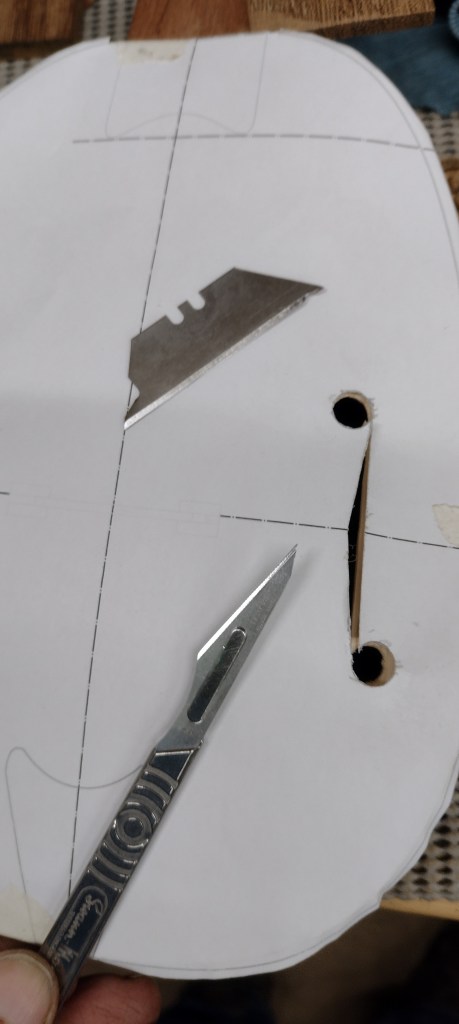 I’ve got the f-holes cut out. Did these with a scalpel.