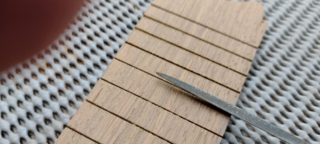 Got the fret slots cut. This is always a scary job since one slip wrecks the piece.