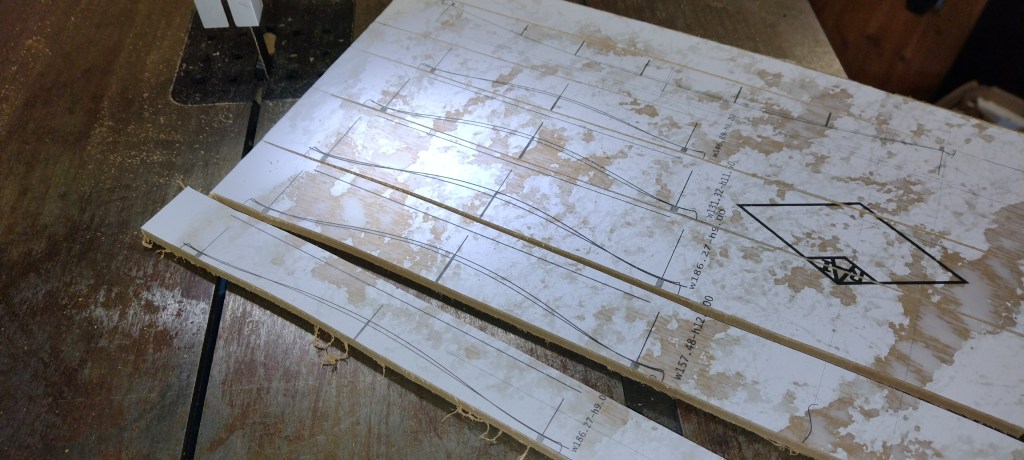 I came to the conclusion that it wasn’t worth using the existing soundboard – it just doesn’t ring nicely. So I tapped all my lumps of wood to find one with a decent sound. The best was some mahongany.