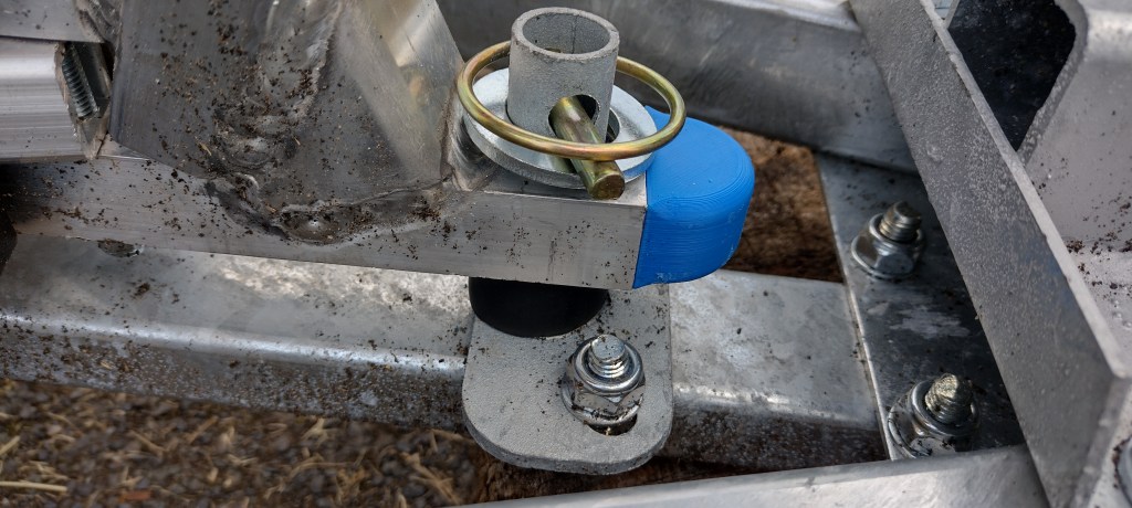 The pin that holds the front of the trolley to the road base had lots of vertical play. This was fixed with car radiator hose from eBay and a big washer from the local country store.